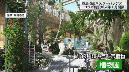 建物内の延べ床面積は712平方メートル。植物園やカフェなどが入る。植物園では、霧島酒造の原料であるサツマイモやスターバックスのコーヒーの木など、約80種類の亜熱帯植物が楽しめる施設になる予定だ。