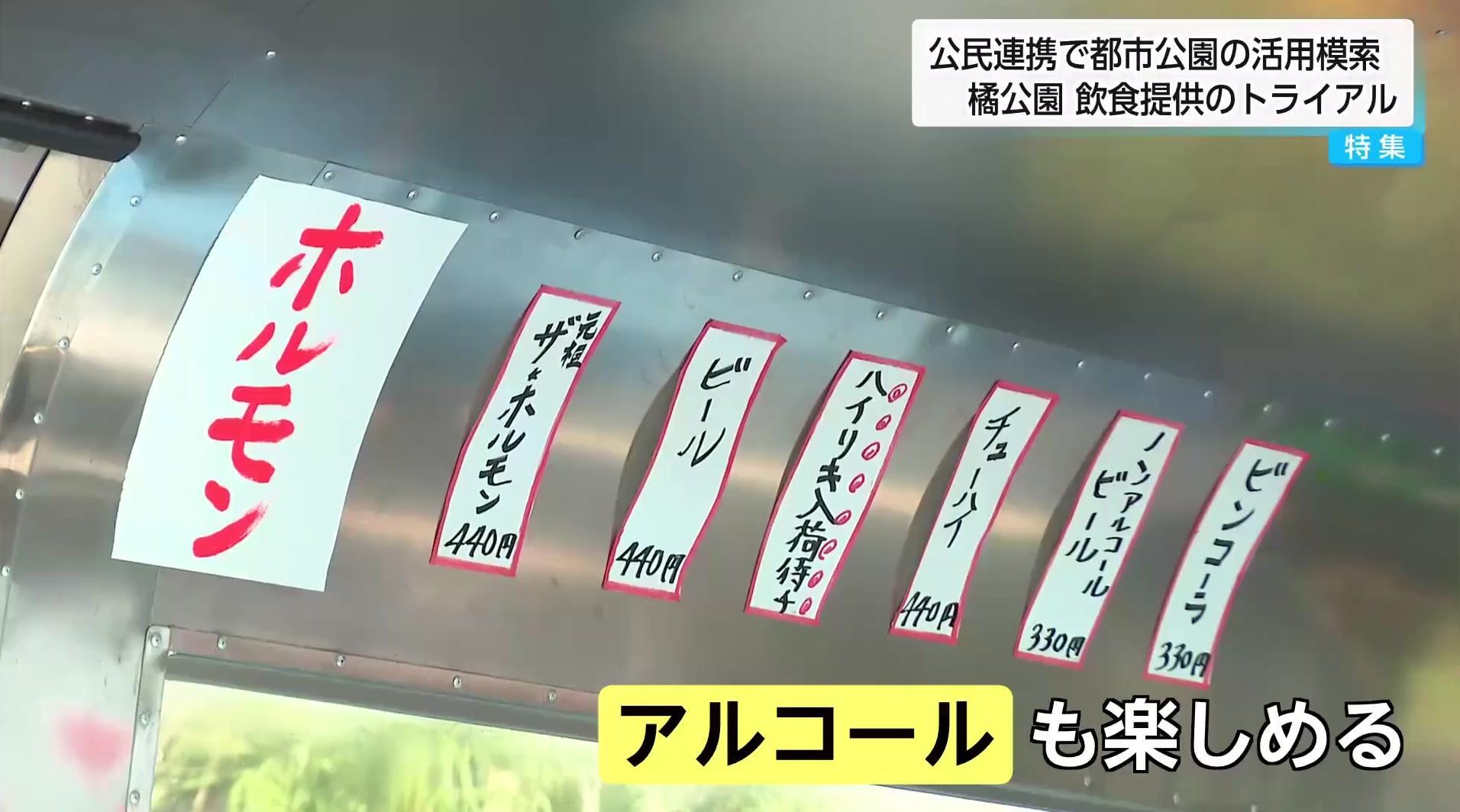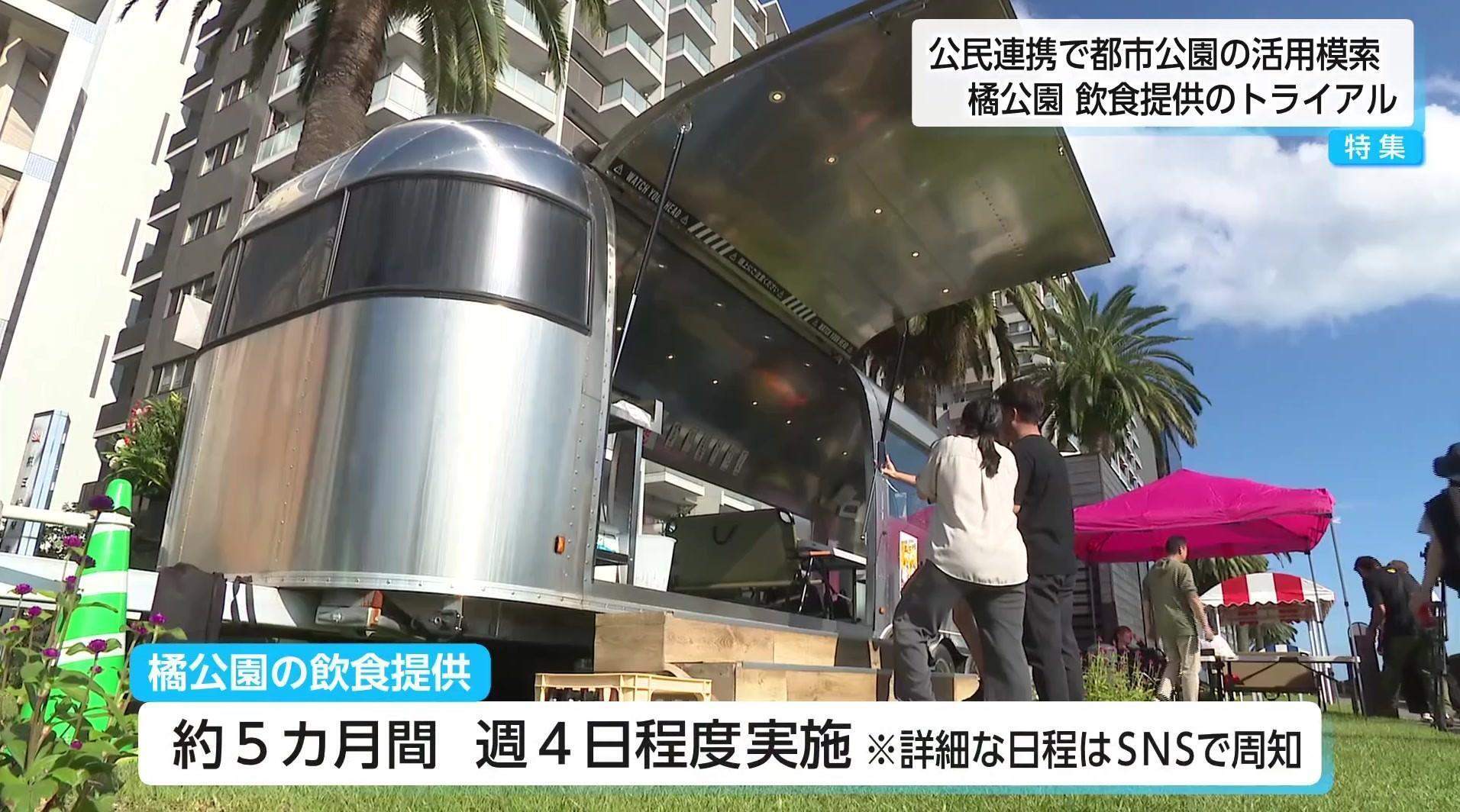 宮崎市の中心部を流れる大淀川沿いの橘公園で、飲食を提供する実証実験が始まった。宮崎市が「公民連携」で都市公園の利活用を探る取り組みのひとつで、キッチンカーで、老舗焼肉店のホルモン鉄板焼きなどが提供されている。アルコールの提供もあり、大人から子供まで楽しめるようになっている。実証実験は、公園の魅力向上と採算性の確認が目的で、将来的には災害支援機能を備えることも視野に入っているという。