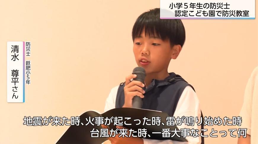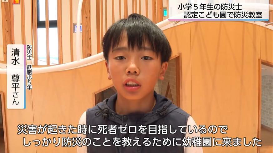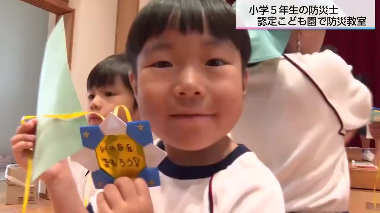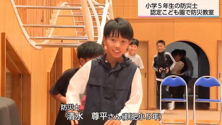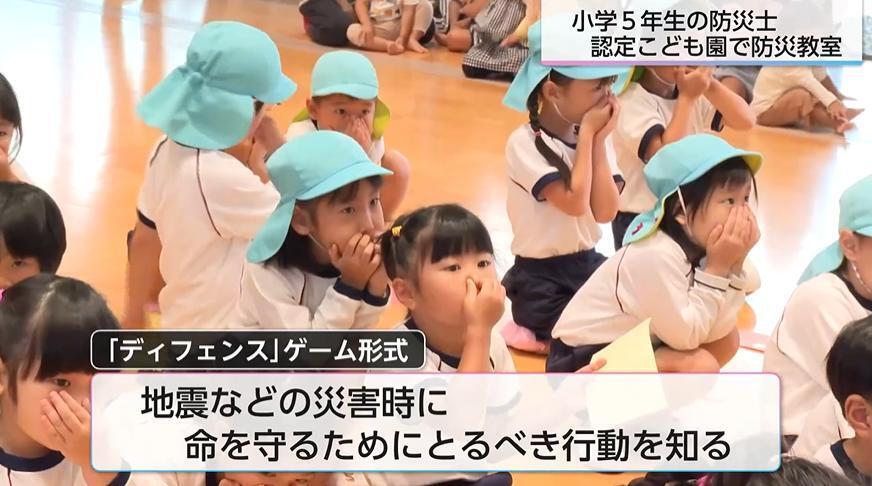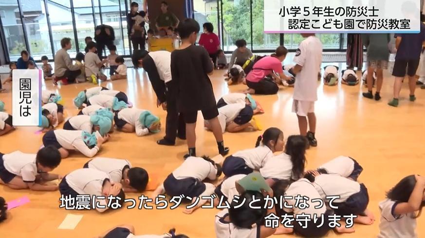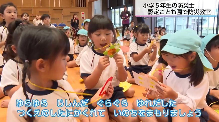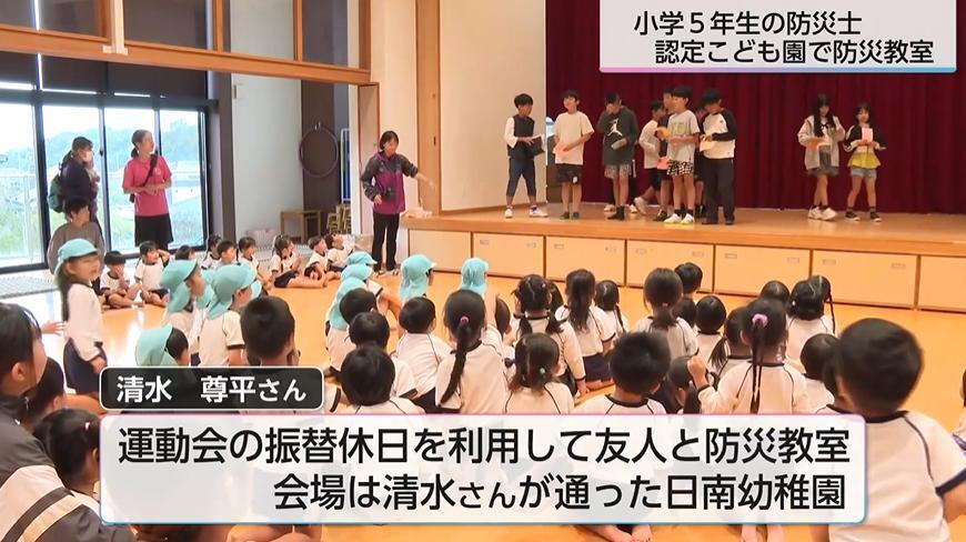 10歳で防災士の資格を取得した小学生防災士が、日南幼稚園で防災教室を開いた。園児に災害時に命を守るための具体的な行動を、ゲームや歌を通じて楽しく学んでもらう。