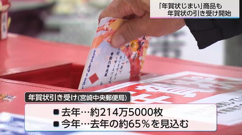 12月15日、全国一斉に年賀状の引き受けが始まった。宮崎中央郵便局でもイベントが開催され、園児らが年賀状を投函したが、現代では年賀状を書かない人が増加傾向にあり、「年賀状じまい」関連商品が拡充されるなど、新年の挨拶のあり方が変化しつつある。