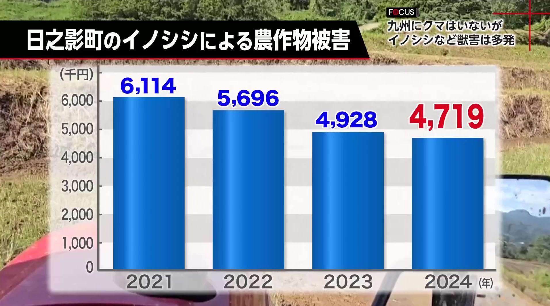 日之影町によると、2024年度のイノシシによる農作物などへの被害額は約470万円。
