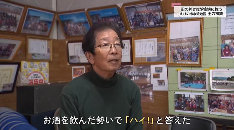 地区の飲み会のときに長老たちから取り囲まれて、「どしてんこしてん"田の神舞"の舞手を継いでくりゃい」と頼まれた。お酒を飲んだ勢いで「ハイ!」と答えた。