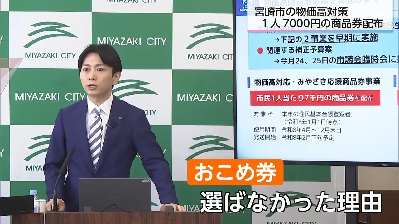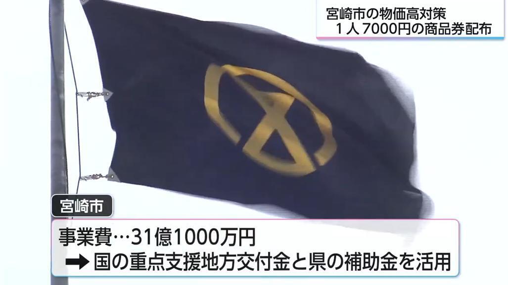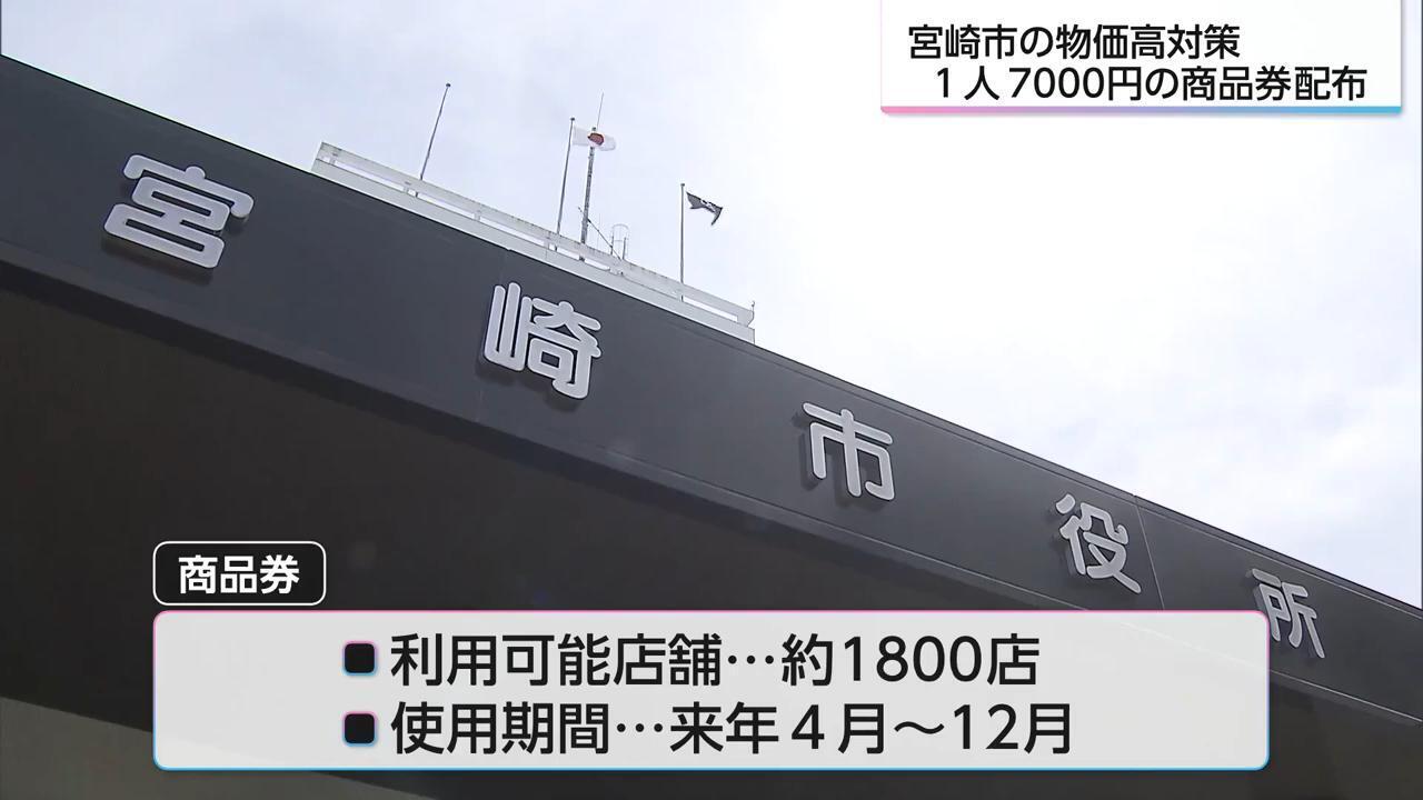 宮崎市は物価高対策として、すべての市民に一人当たり7,000円の商品券を配布する方針を示した。配布対象は全ての宮崎市民だ。