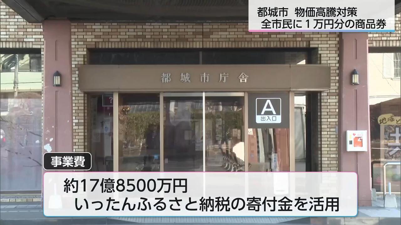 都城市は、食料品などの物価高騰に直面する市民を支援するため、全ての市民を対象に一人当たり1万円分の商品券を配布することを決定した。こちらも国の重点支援地方交付金を活用し、物価高騰支援券として商品券を配布する。