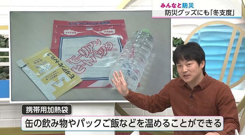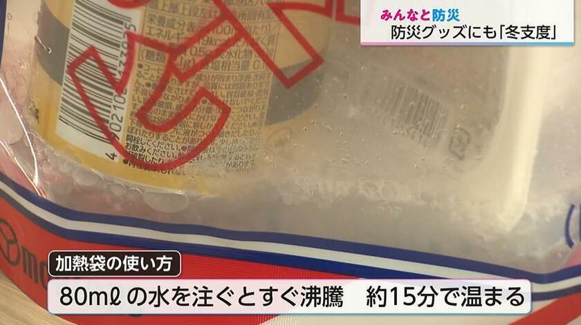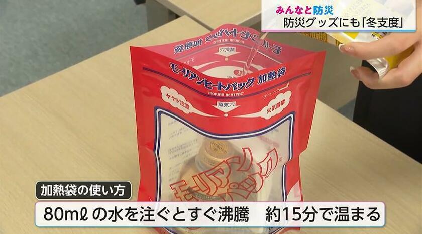 さらに、寒い冬の夜には温かい食事が心身を落ち着かせる。「携帯用加熱袋」は、カセットコンロのようにかさばらず、缶の飲み物やパックご飯などを温めることができる便利なアイテムだ。