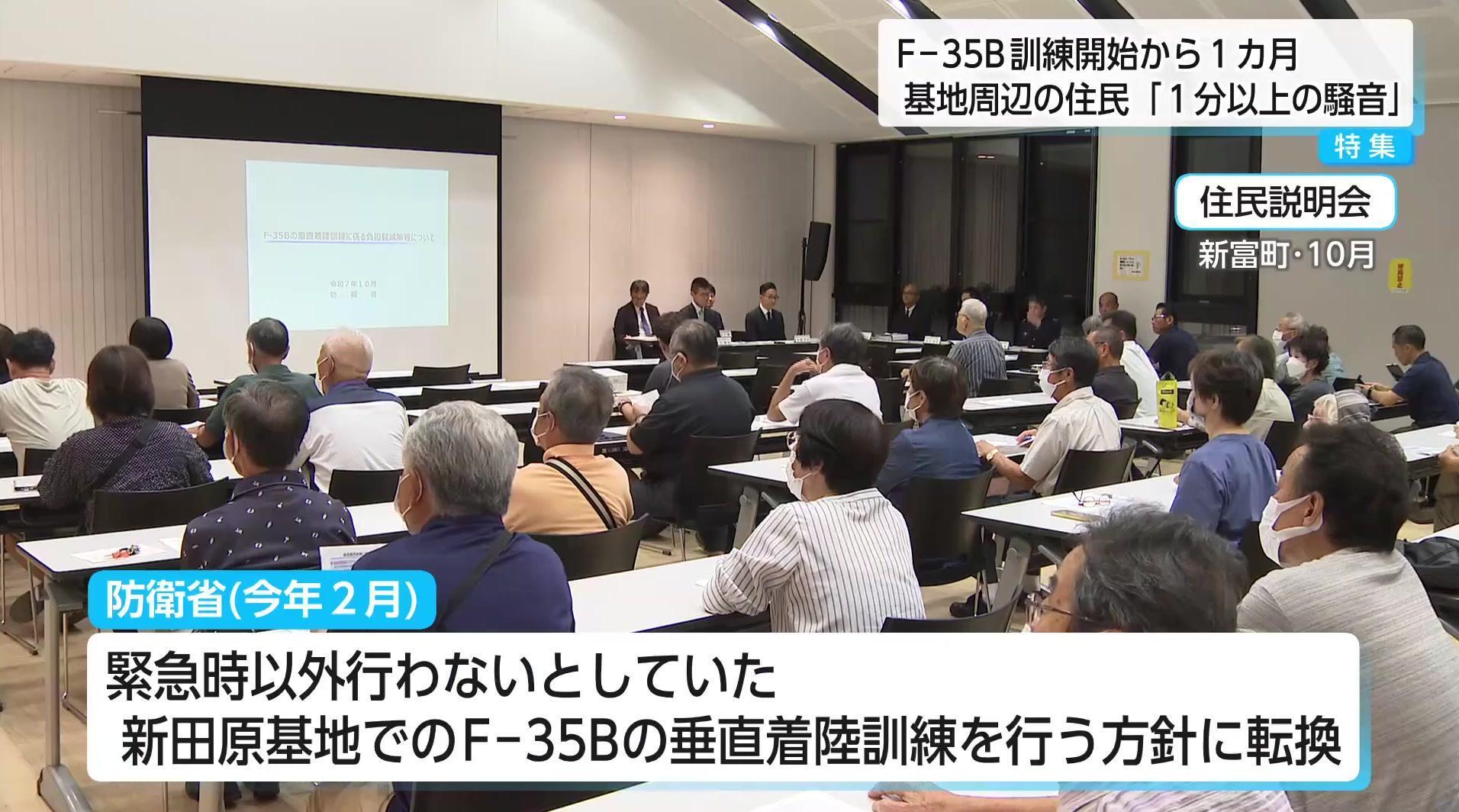 新富町区長会の河野國夫会長は、「2024年の受け入れの時からの約束を反故にした。約束を覆すようなことがあったら、防衛省、基地との信頼関係が無くなる」と訴え、防音区域の拡大など、町民への負担軽減策の充実を求めている。