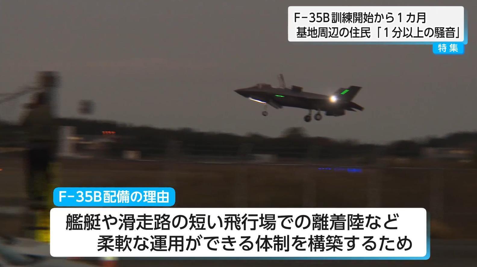 航空自衛隊新田原基地では、最新鋭ステルス戦闘機F-35Bの訓練が開始されてから1カ月を迎えた。夜間の垂直着陸訓練も実施され、基地周辺の住民は1分以上にわたって続く騒音に、日々晒されている。