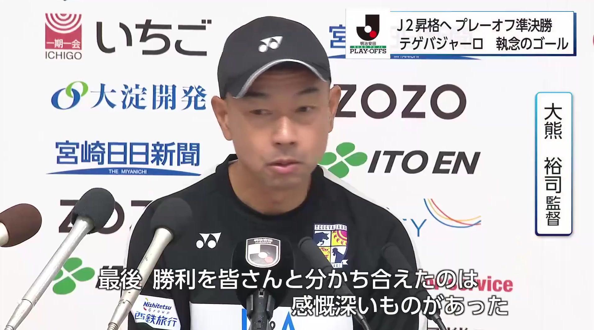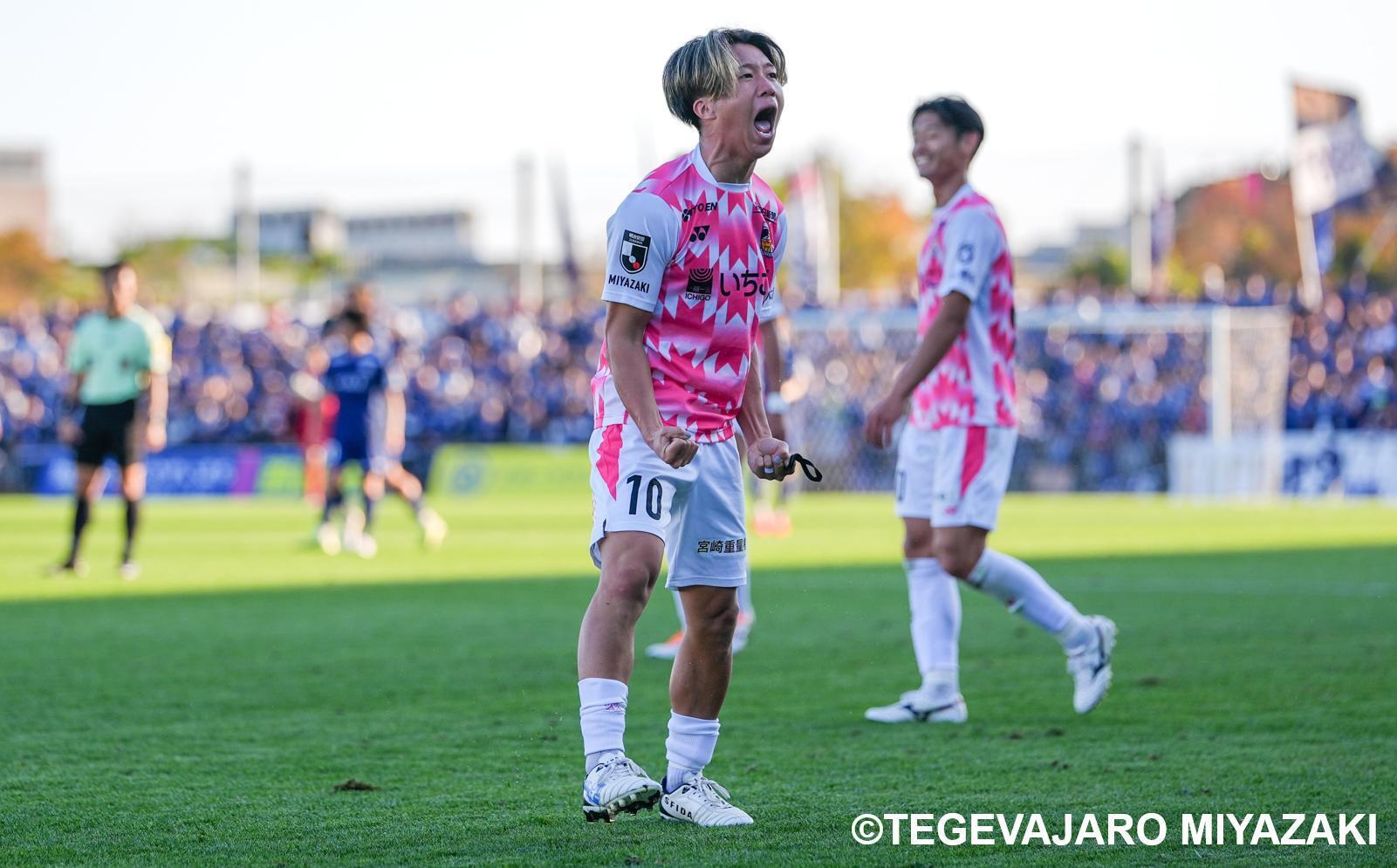 【J2昇格PO】テゲバ宮崎、執念の決勝進出! 井上怜&松本雄真が鹿児島からゴール奪う サポーターの大声援が導いた"歴史的勝利" 大熊監督「必ず勝って上に行く」