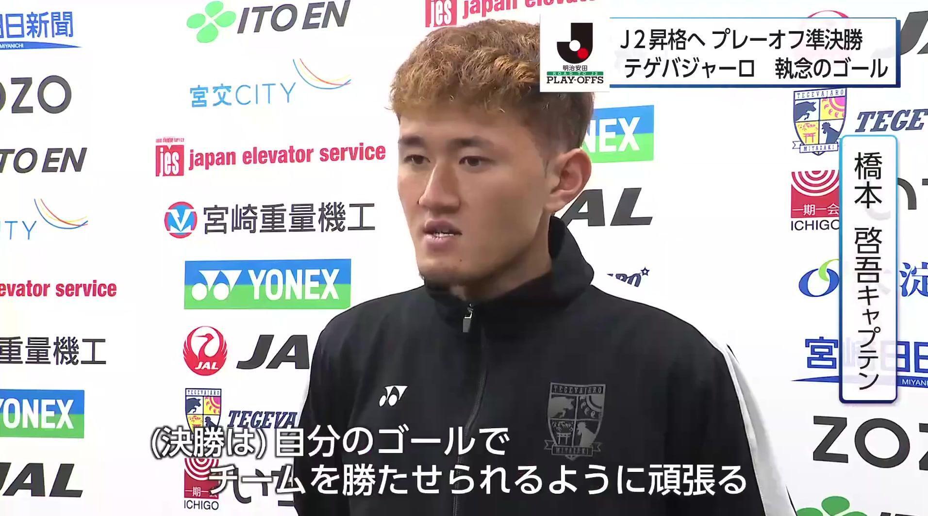 橋本啓吾キャプテンは「なんとしても負けられないというところが、ピッチ上で全員が表現できた試合だった。決勝戦は自分のゴールでチームを勝たせられるように頑張る。J2昇格に向けて全員をそこに導ければと思う」と決意を新たにした。