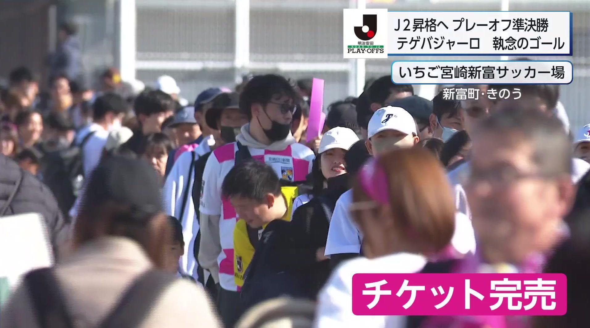 J2昇格をかけた大一番に、いちご宮崎新富サッカー場は熱気に包まれた。