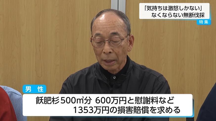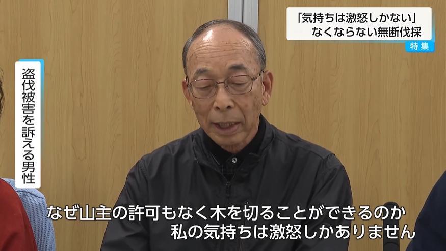しかし、被害者男性は、汗を流して体力を使って大事に育ててきた山が一瞬にして失われたことに、「なぜ山主の許可もなく木を切ることができるのか。私の気持ちは激怒しかありません」と語気を強める。