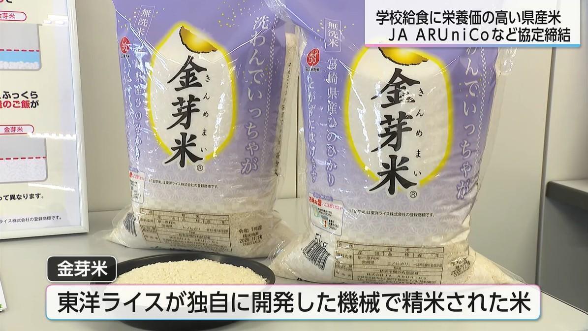 宮崎県内の学校給食に、栄養価の高い県産米を届ける取り組みが始まる。