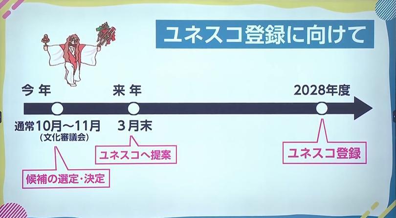 ユネスコ無形文化遺産登録の日本の候補となった「神楽」は、2025年度中にユネスコに提案される。その後審議が行われ、2028年のユネスコ登録を目指す。