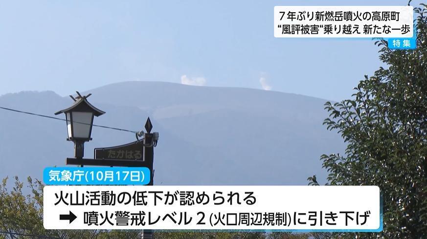 しかし、10月17日、気象庁は火山活動の低下が認められるとして、警戒レベルを火口周辺規制の「2」に引き下げた。