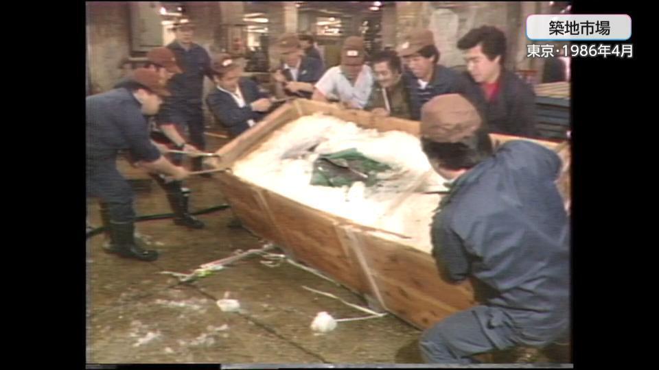 【動画】築地・豊洲市場で歴代1位"496kg巨大マグロ"の貴重な記録映像 乗組員6人が3時間かけ捕獲・備え付けのクレーンで水揚げできず大型クレーンをチャーター(1986年)