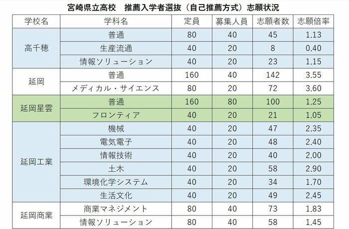 高千穂・延岡・延岡星雲・延岡工業・延岡商業の志願状況