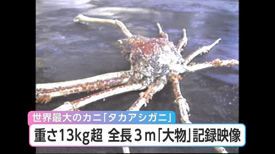 【動画】世界最大のカニと言われる「タカアシガニ」の大物!1987年の記録映像 重さ13キロ超、脚を広げると3メートル超 50人分の鍋料理ができる大きさで当時の落札額は1万円