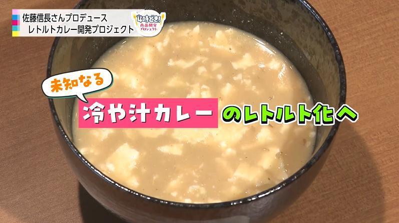 冷や汁カレーはまだ本当に見たことないんで、疑ってる方絶対いると思うんですよ。出た瞬間、えっ!?て反応した人、絶対いると思う。絶対そんな人にこそ、食べていただきたい。本当に美味しく出来上がった。