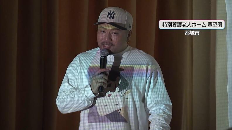 都城市の特別養護老人ホーム「豊望園」のホールに、高らかな宣言とともに懐かしのヒットソングが響き渡った。