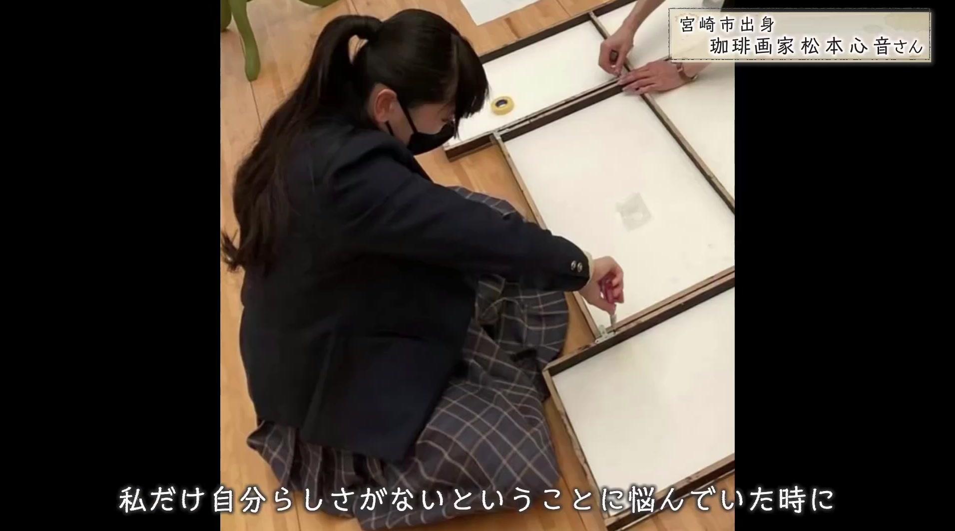 宮崎市内の高校で芸術学科に在籍していた際、周囲と比較して「自分らしさがない」という悩みに直面。そのとき、先生に「コーヒーで描いてみたら?」ときっかけをもらった。
