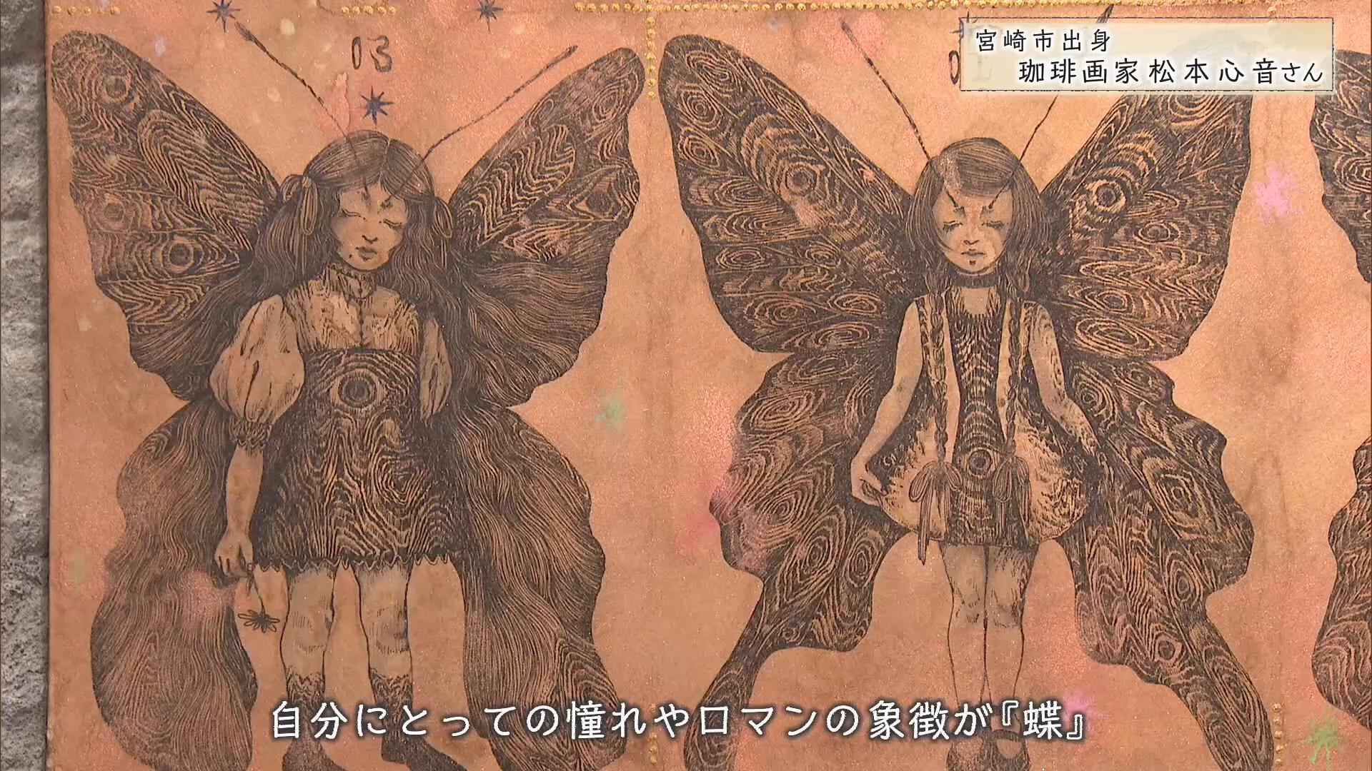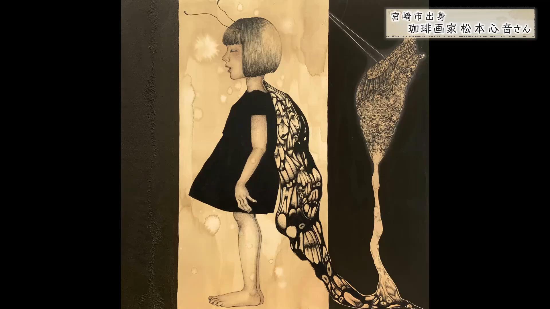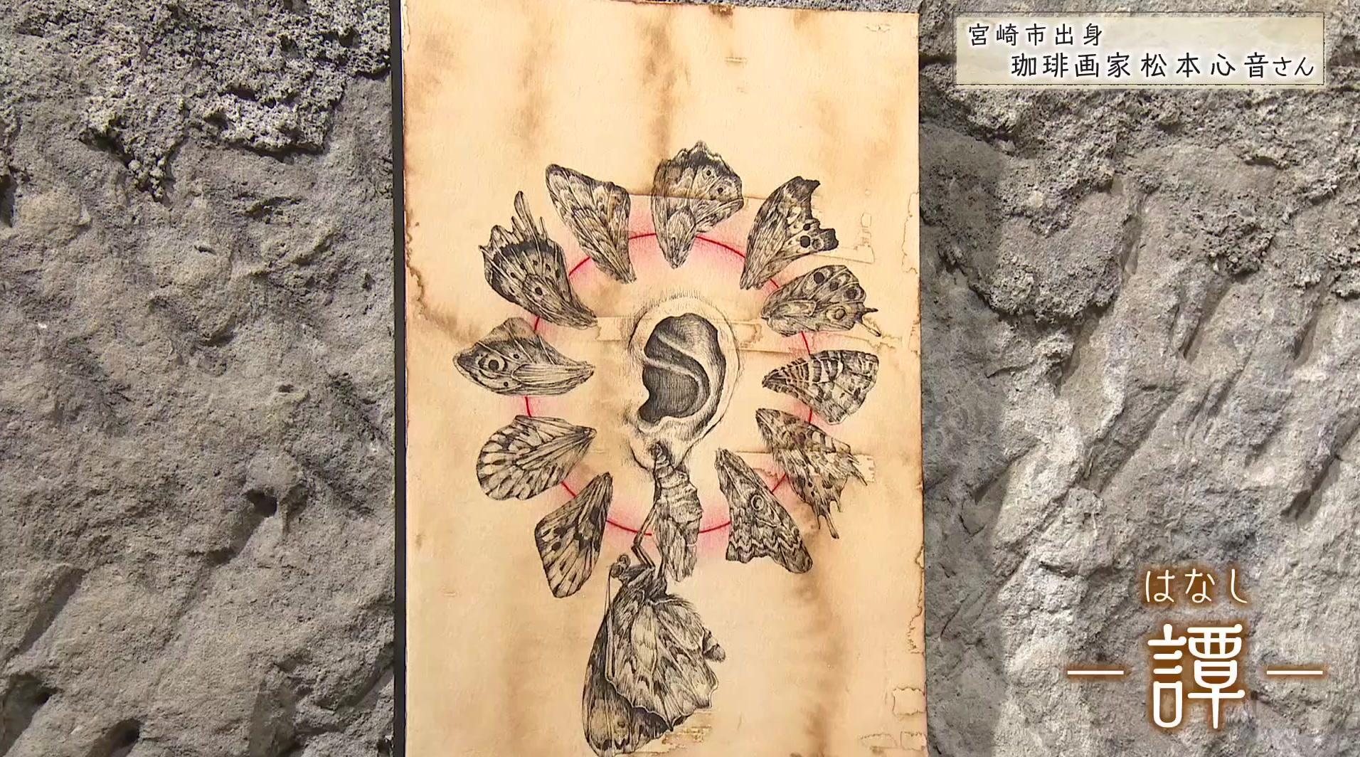 宮崎市出身の珈琲画家、松本心音さん(21)が、地元宮崎市で初の個展を開催した。松本さんはコーヒー特有の風合いを活かした「珈琲染め」の手法を用い、幻想的な世界観を描き出す新進気鋭の作家だ。独自の感性で紡がれる物語の魅力を探る。