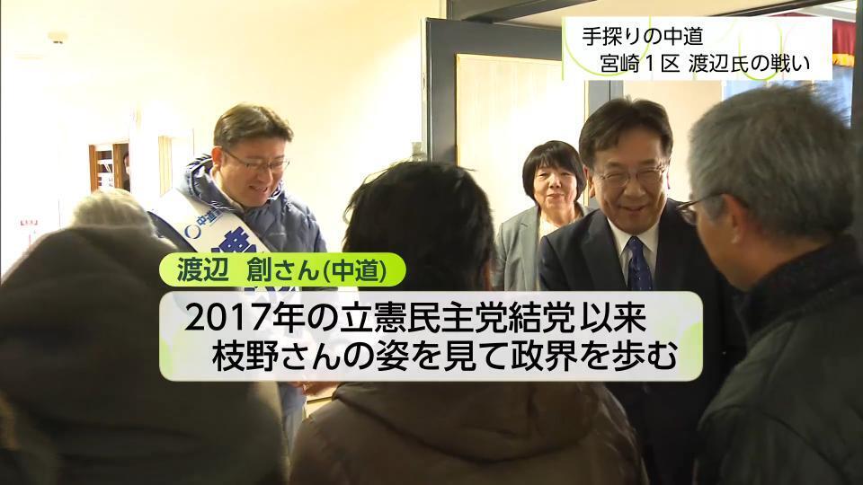 中道の渡辺創氏は、2017年に枝野幸男氏が立憲民主党を結党して以来、その姿を見て政界を歩んできた。2021年、宮崎1区で衆院選に初挑戦して以来、2期連続、小選挙区で自民候補を破り当選。今回は3期目を目指した選挙戦だった。
