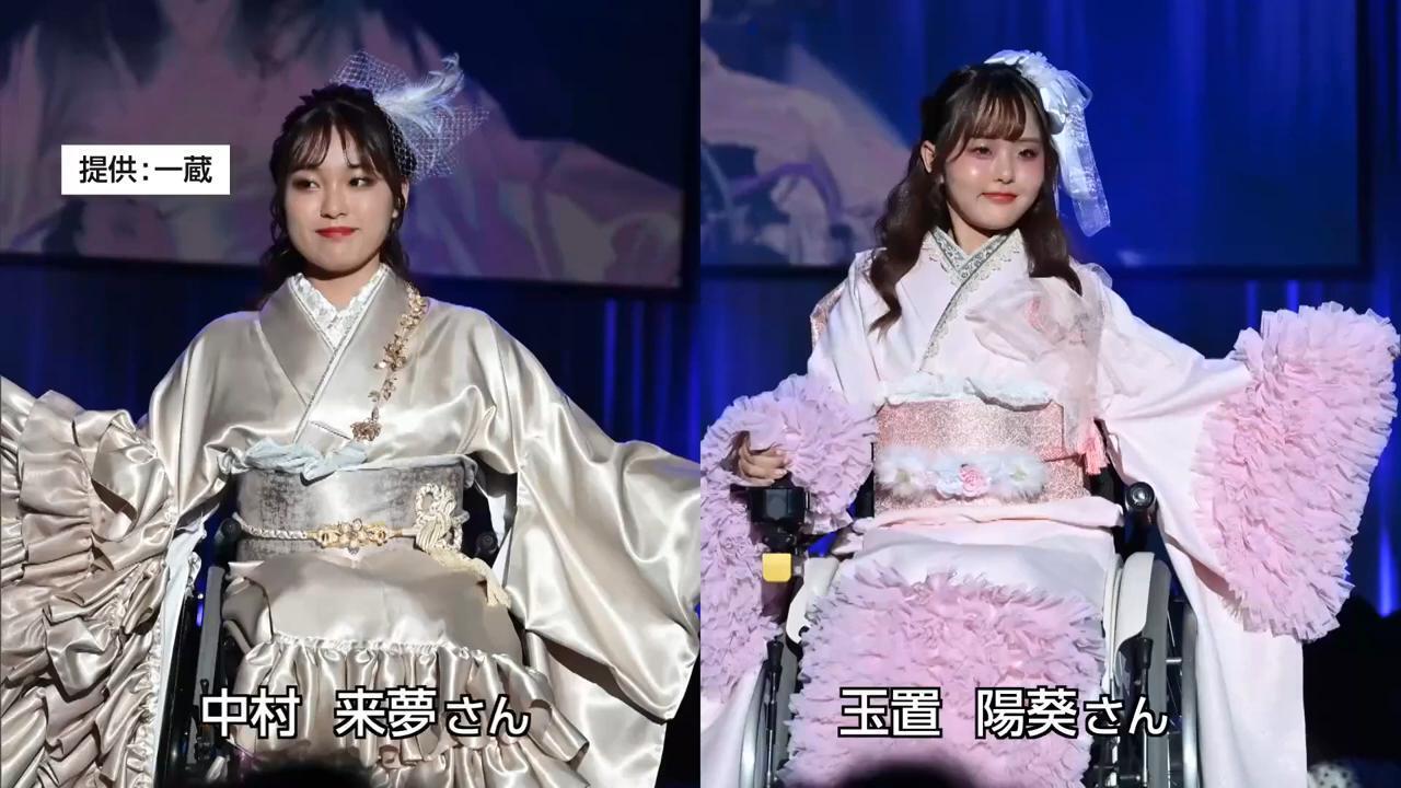 2025年、車椅子専用振り袖を着てランウェイに登場した車椅子モデルの中村来夢さんと玉置陽葵さんは、お気に入りのものを着られる楽しさを実感したと話す。