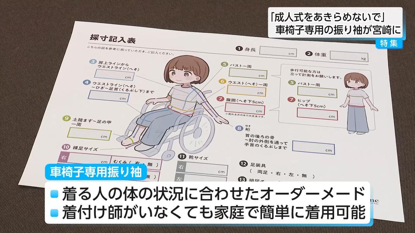 宮崎市の振り袖専門店「一蔵&オンディーヌ宮崎店」では、2025年11月から「車椅子専用」振り袖の取り扱いを開始した。
