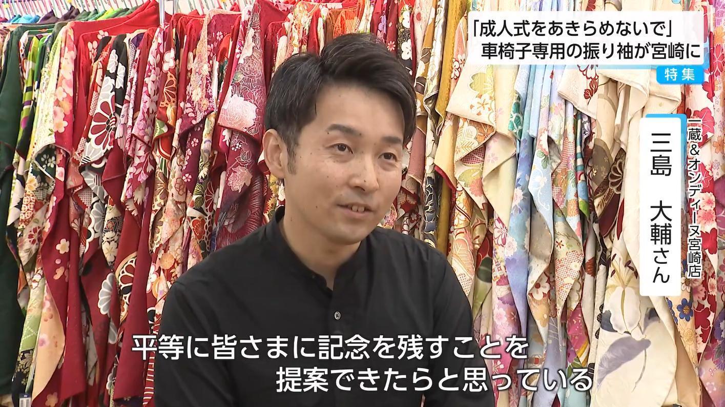 車椅子ユーザーにとって希望となっているこの振り袖は、宮崎市の「よしみカメラ」が運営する振り袖専門店「一蔵&オンディーヌ宮崎店」で取り扱っている。
