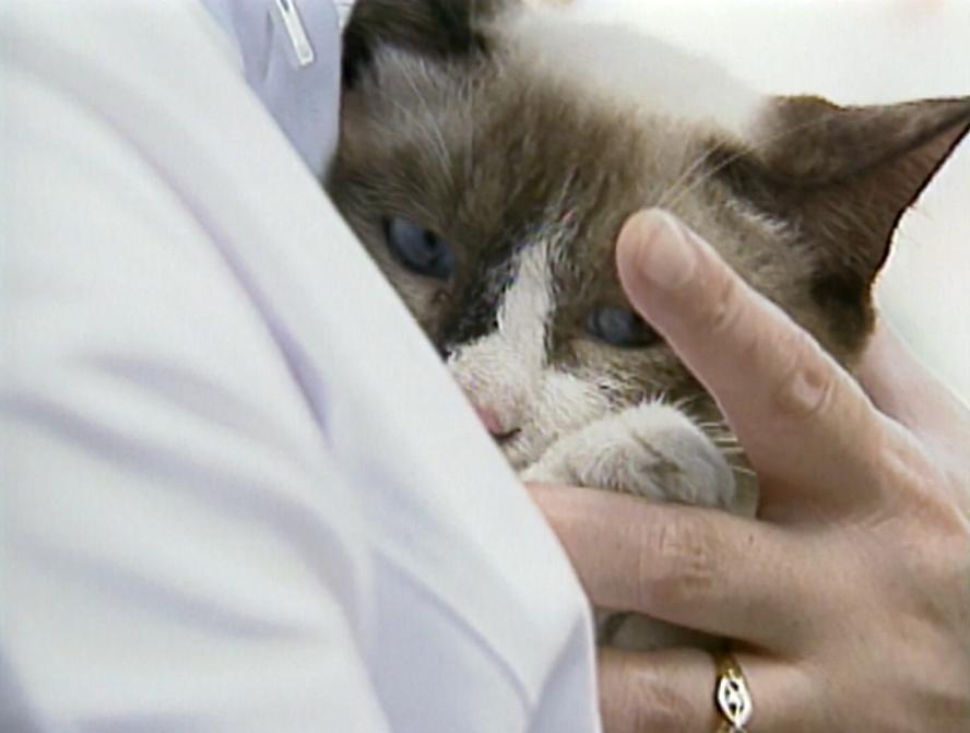 救い出された子猫は、無事に飼い主の元へ。抱きしめられると、安心したような表情を見せていた。