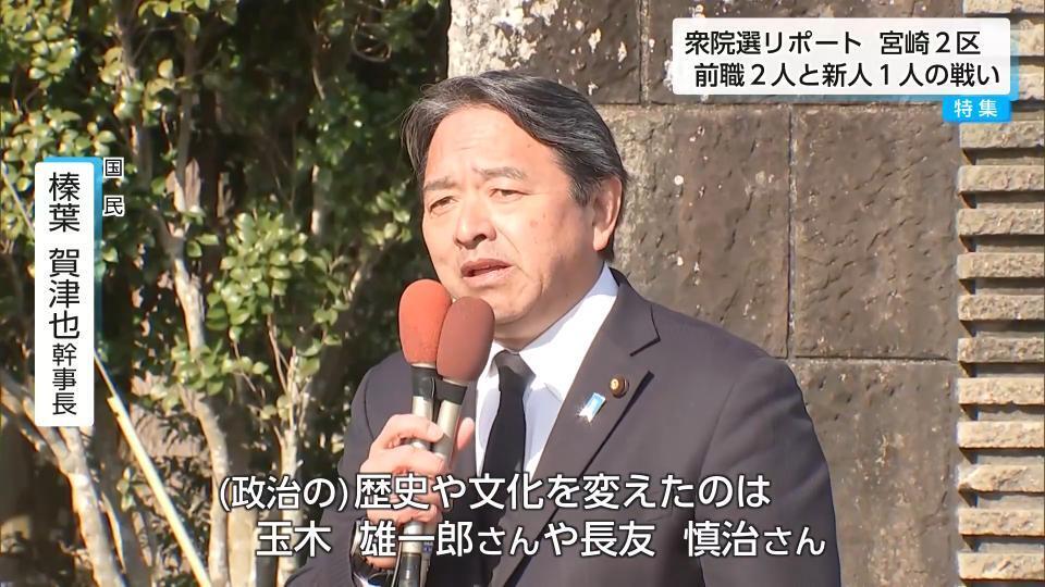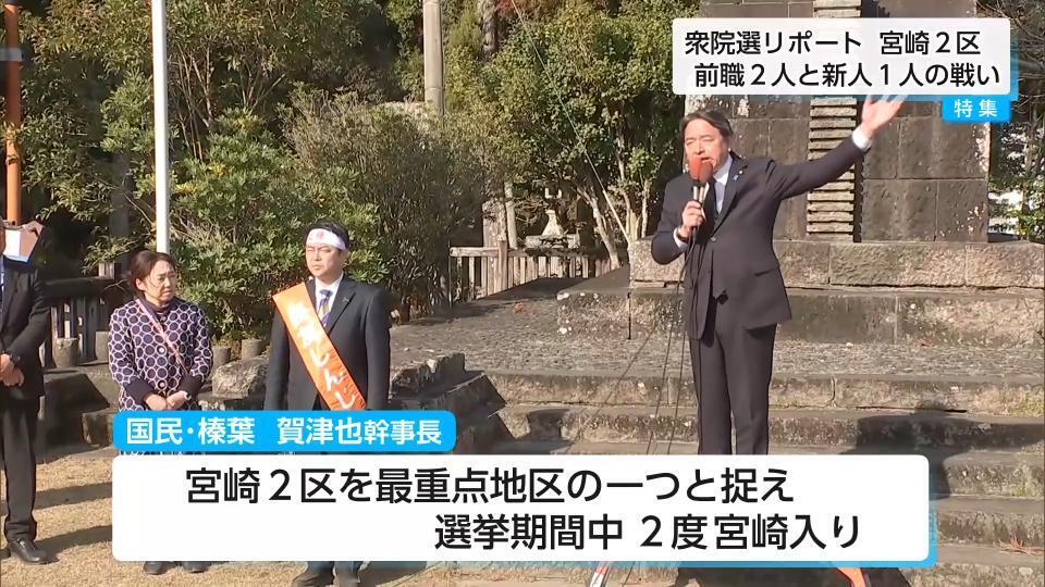 榛葉賀津也幹事長は宮崎2区を最重点地区の1つと捉え、選挙戦中に公示日も含め2度宮崎入りした。