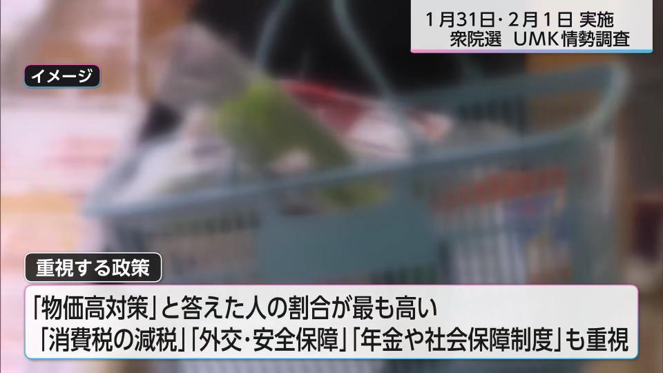 重視する政策については、「物価高対策」と答えた人の割合が最も高く、「消費税の減税」や「外交・安全保障」「年金や社会保障制度」も重視されています。
