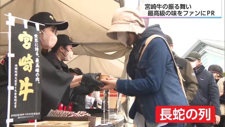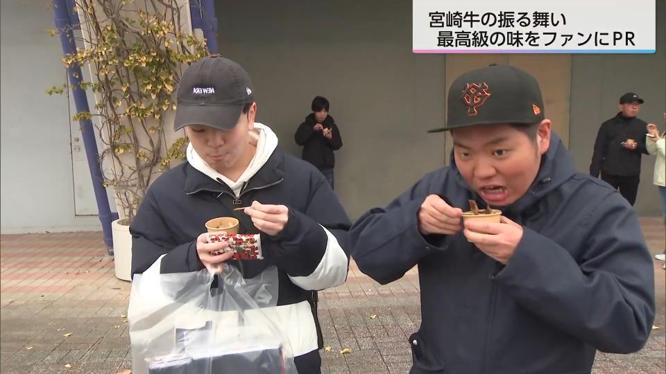 WBCを前に宮崎市でキャンプを行っている侍ジャパンの会場では、17日、「JAみやざき」と「より良き宮崎牛づくり対策協議会」が宮崎牛の振る舞いを実施した。会場には食欲をそそるおいしそうな香りが漂う。