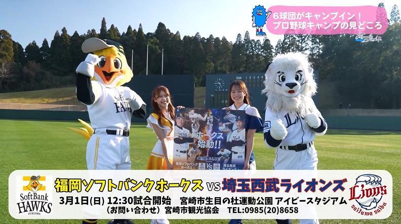 プロ野球春季キャンプが全国各地でスタートした。宮崎県では、読売巨人軍、福岡ソフトバンクホークス、埼玉西武ライオンズ、オリックス・バファローズ、広島東洋カープ、千葉ロッテマリーンズの一軍6球団がキャンプを行う。各球団のマスコットキャラクターに、それぞれのキャンプの見どころを教えてもらった。