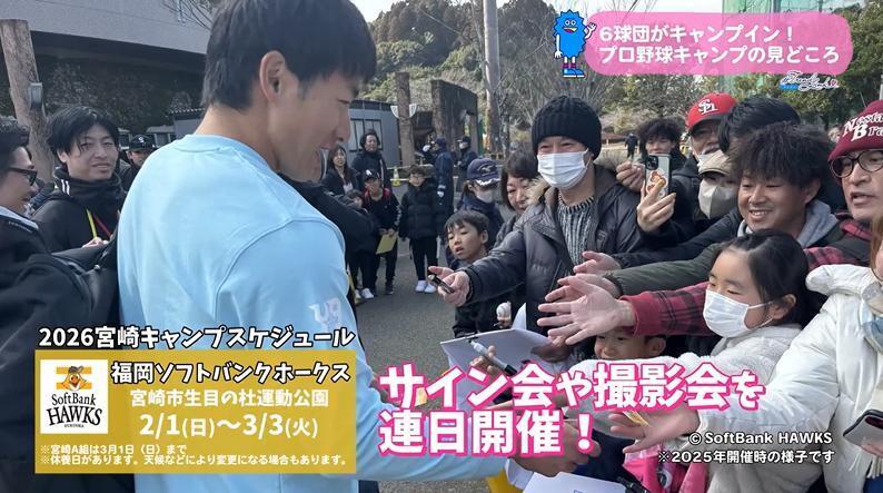 ホークスの春季キャンプでは、選手によるサイン会や撮影会などを連日行い、ファンサービスでも日本一を目指します。