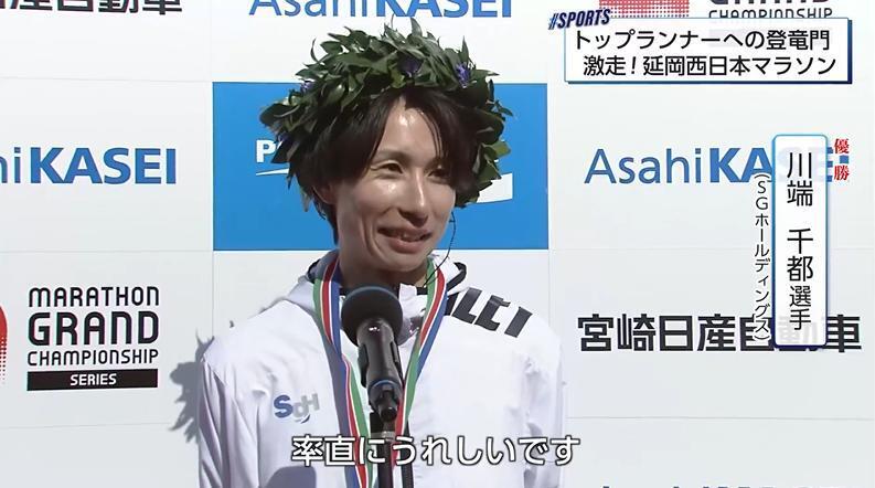 SGホールディングス 川端千都選手:率直にうれしい。今回のレースは自己ベストの更新を目標に走っていたけど、後半思ったより余裕があったので、ラスト5キロ勝負をしてみようと思い切っていった。