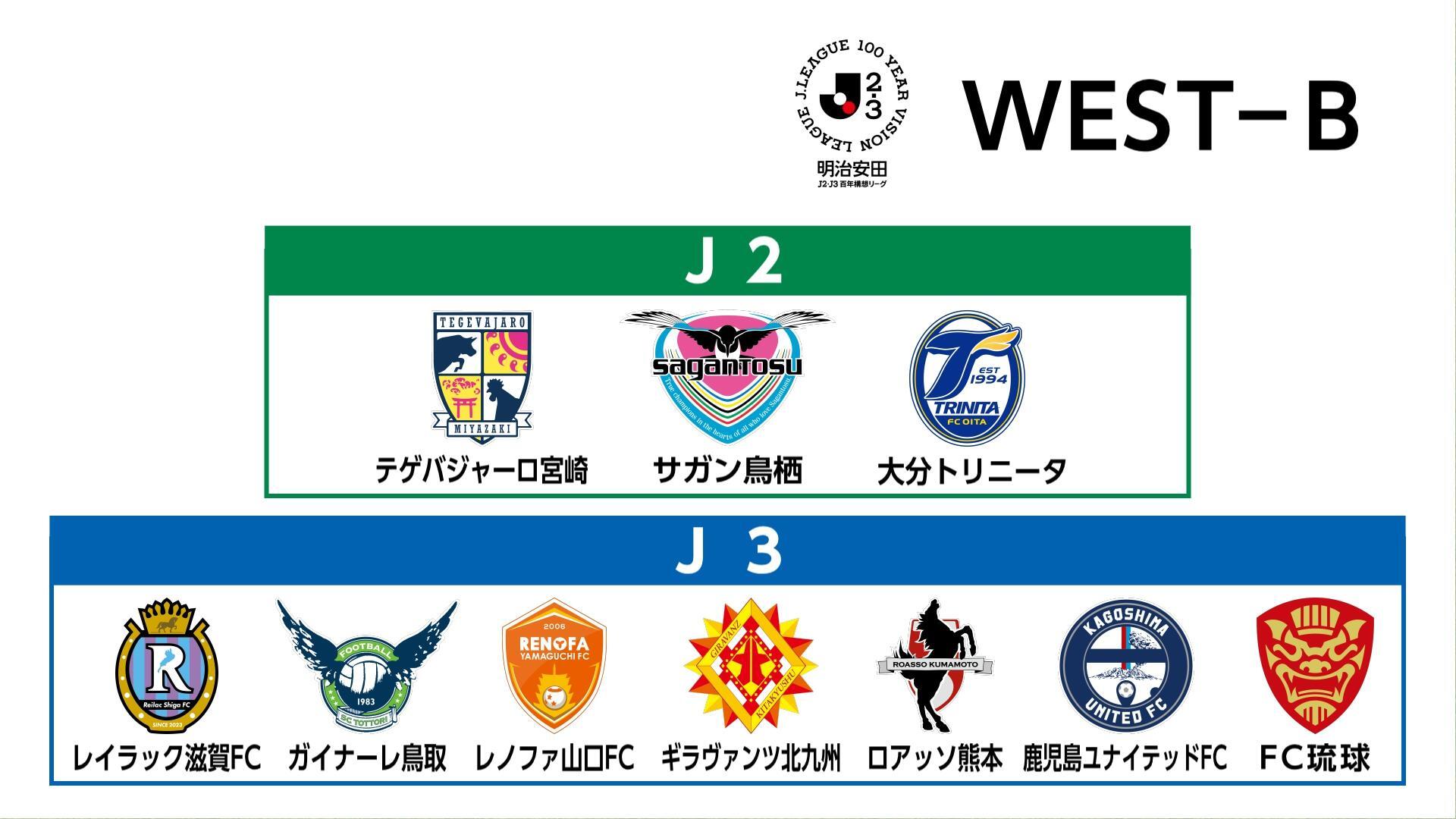 J3:レイラック滋賀FC、ガイナーレ鳥取、レノファ山口FC、ギラヴァンツ北九州、ロアッソ熊本、鹿児島ユナイテッドFC、FC琉球
