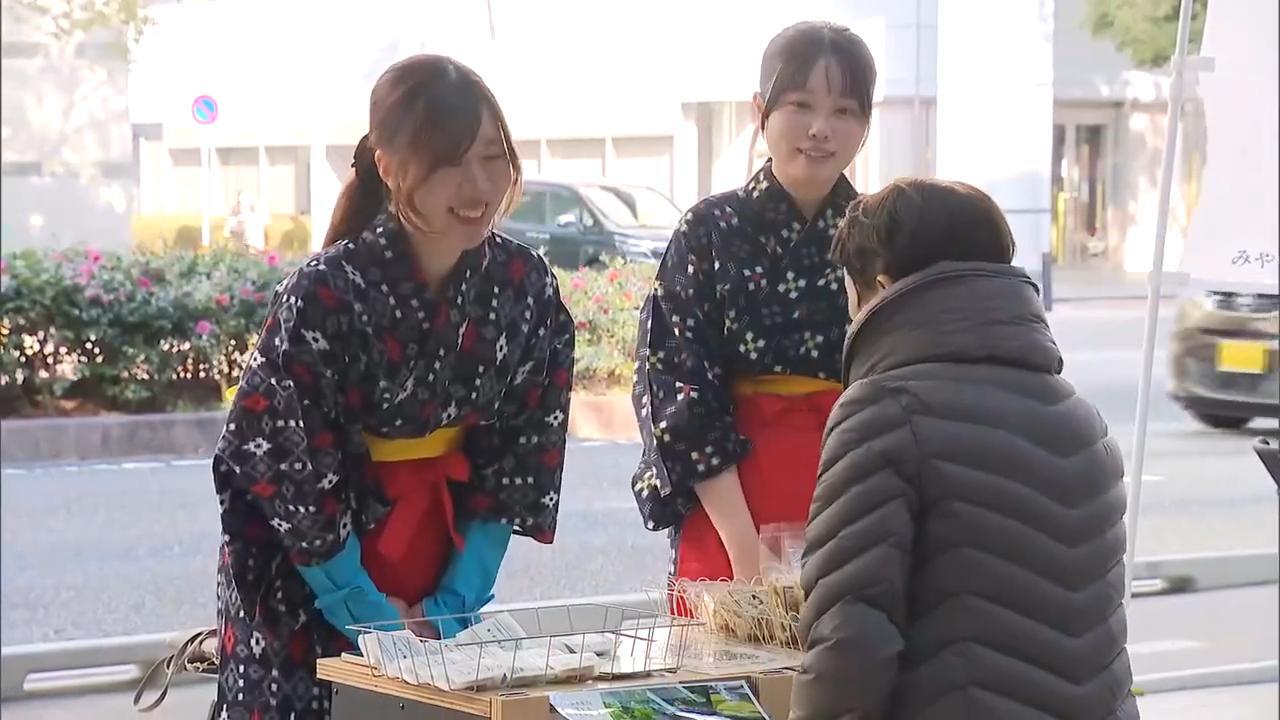 通りではお茶やお菓子の販売が行われたほか、複合施設HAROW高千穂通の「&Labo by UMK」には、急須でお茶を淹れる疑似体験できるゲームコーナーが設けられた。