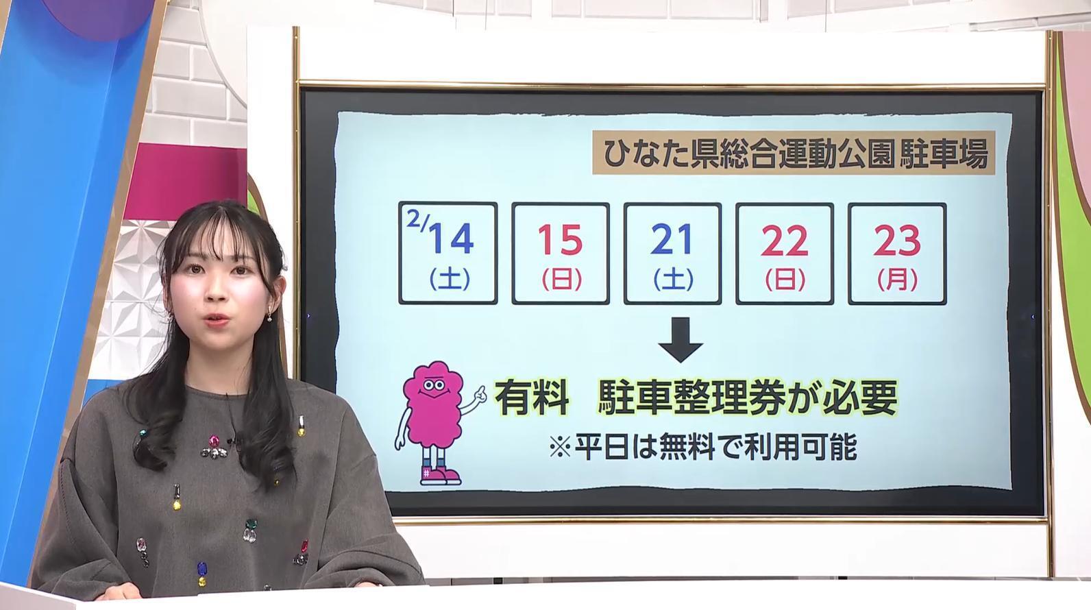 ひなた県総合運動公園内の駐車場は、14日と15日、さらに21日、22日、23日は有料となり、駐車整理券が必要となる。