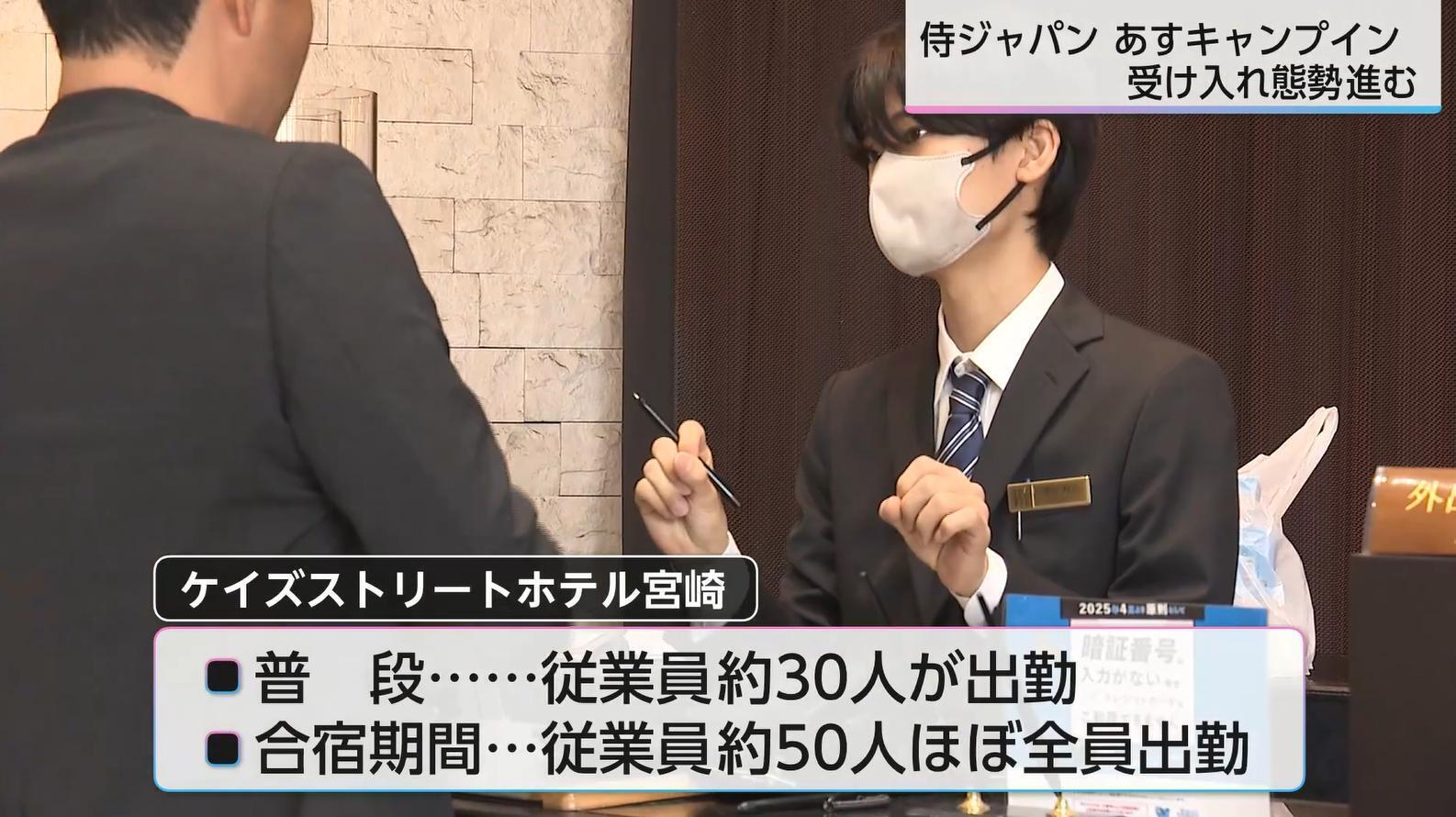 県庁近くのケイズストリートホテル宮崎では、侍ジャパンの合宿期間中、156室ある客室の稼働率が90%を超え、満室に近い日もあるという。