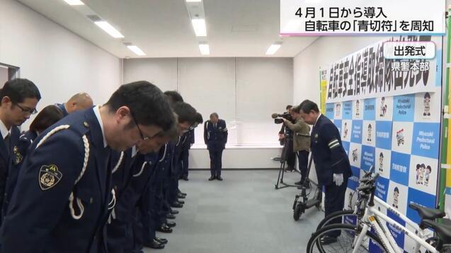 宮崎県警は3月10日、自転車の"青切符"導入を前に、宮崎市で自転車安全指導取締隊を発足させた。自転車安全指導取締隊は、警察官約20人で構成され、自転車の「青切符」について、啓発活動や取り締まりを行う。