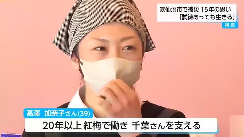 東日本大震災から15年が経過した。津波で甚大な被害を受けた宮城県気仙沼市では、街並みが大きく変貌し、復興が進む。この地で60年近く菓子店「紅梅」を営む女性も、震災で店舗兼住宅を失いながらも、再建への道を歩んできた一人だ。仮店舗での営業を経て、震災から5年後に元の場所での再開を果たした千葉さんが、この15年間で得た「生きる」ことへの強い思いを語る。