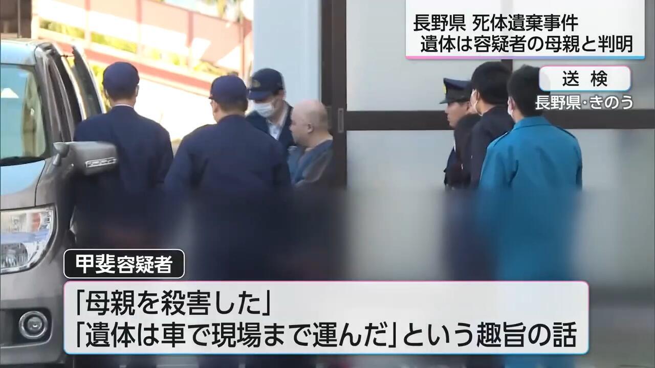 「母親を殺害し、車で運んだ」長野県の山中で76歳母親の遺体見つかる 宮崎県の35歳男が死体遺棄容疑で逮捕・送検 警察は殺人容疑も視野に捜査