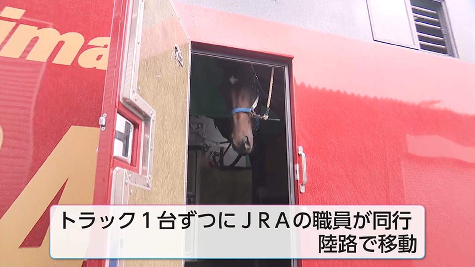 長距離移動には、トラック1台ごとにJRAの職員が同行する。移動中に必要な飼料約20キロや飲み水などがトラックに積み込まれた。