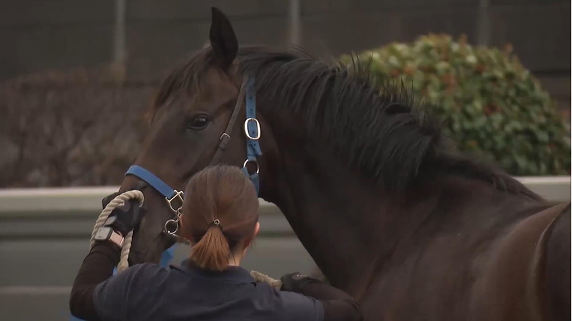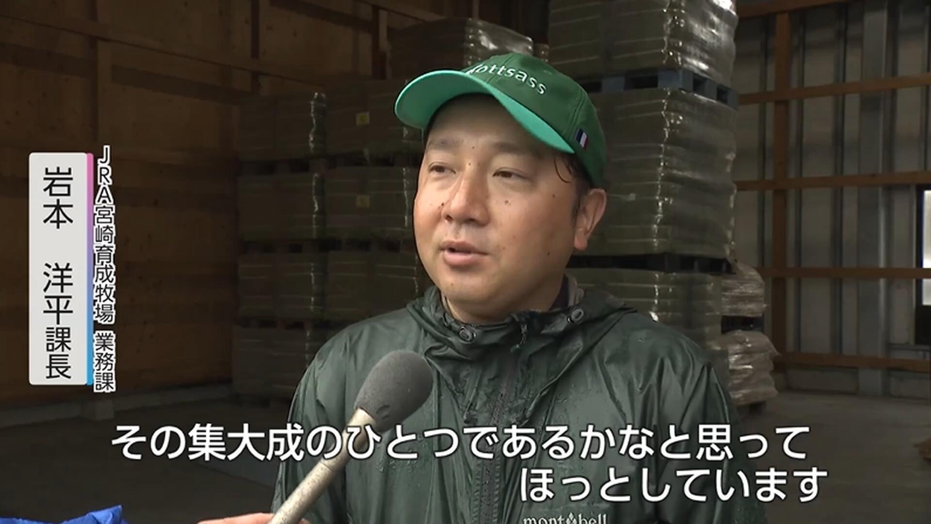JRA宮崎育成牧場業務課の岩本洋平課長は、これまで丹念に世話をしてきた日々を振り返り「集大成かなと思ってほっとしている。まずは無事に競りを終え、新しい馬主さまのもとでデビューしてくれることを願っている」と話す。