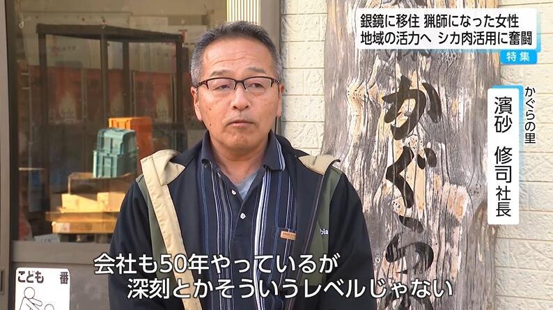 ユズの生産から販売までを行う「かぐらの里」の濱砂修司社長は、収穫量が1割から2割減少するのは日常茶飯事であり、最近ではシカが木の皮まで剥いで木そのものを枯らせてしまうと窮状を訴える。