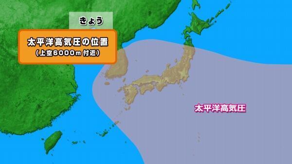 梅雨明けの判断をする際には、上空6000m付近の高気圧を参考にしており、今日も太平洋高気圧が日本列島を広く覆っていました。