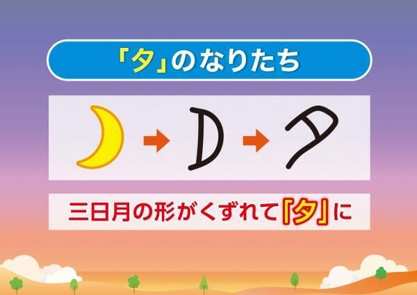 夕日や夕焼けなので、「太陽」のイメージがありますが、三日月の形が、少しずつ崩れて、「夕」という漢字が生まれたようです。