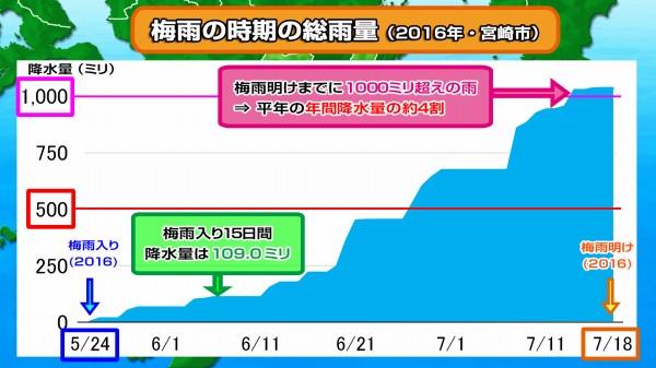 梅雨の後半に大雨が相次いだことで、梅雨明けまでに降った雨の量は最終的に1000ミリ以上となっています。