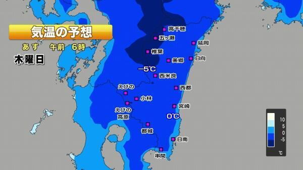 山沿いでは氷点下5度前後まで下がるところがありそうです。
